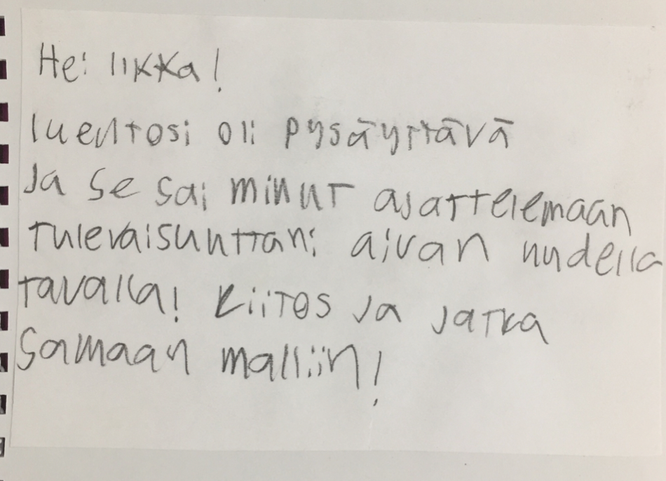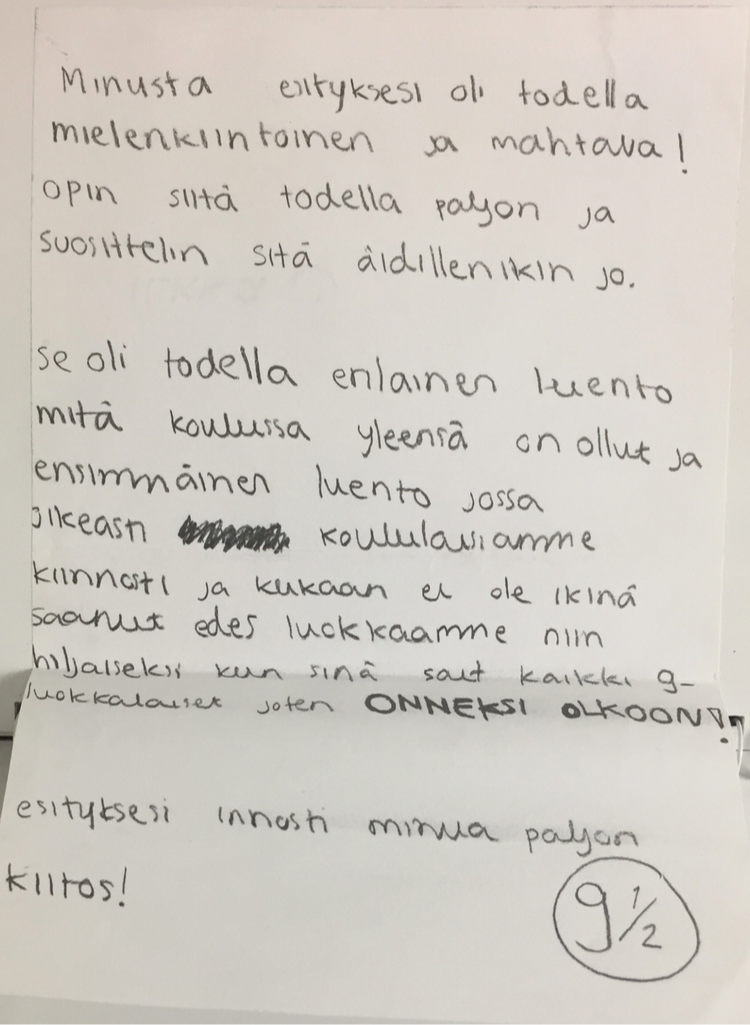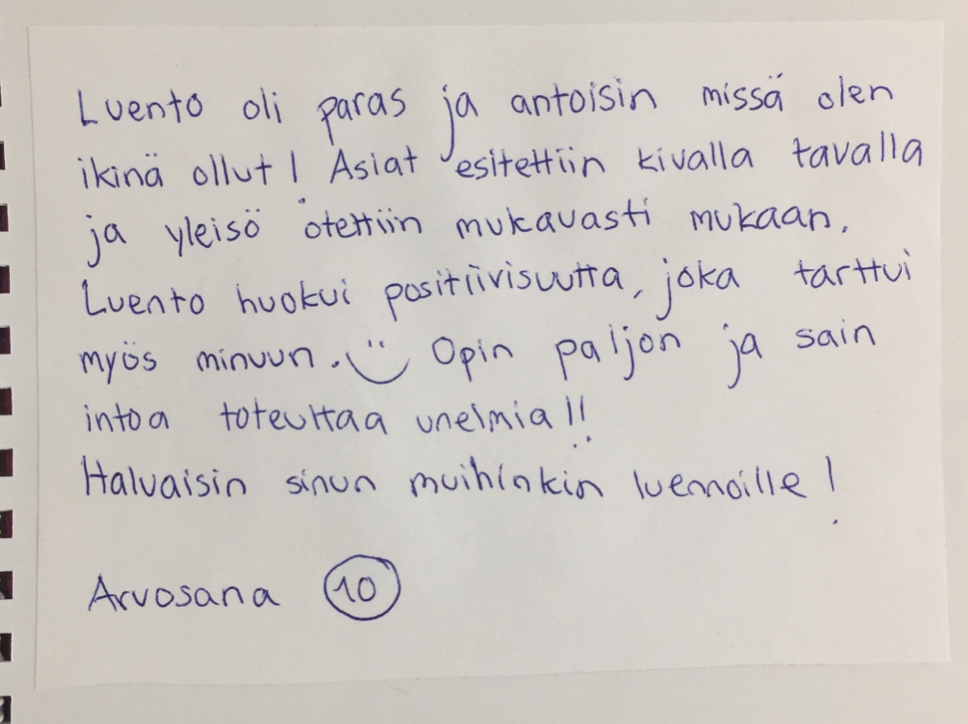 Nämä ovat palautteita Ilkan aiemmalta luennolta 9-luokkalaisille: