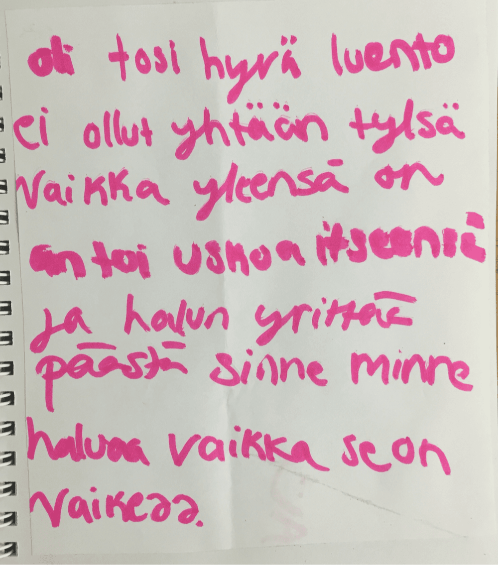 Tavoitteeni on lisätä nuortemme hyvinvointia ja jaksamista sekä antaa konkreettisia työkaluja itsevarmuuteen ja oman elämän ohjaamiseen Suomen jokaisen yläkoulun oppilaalle.